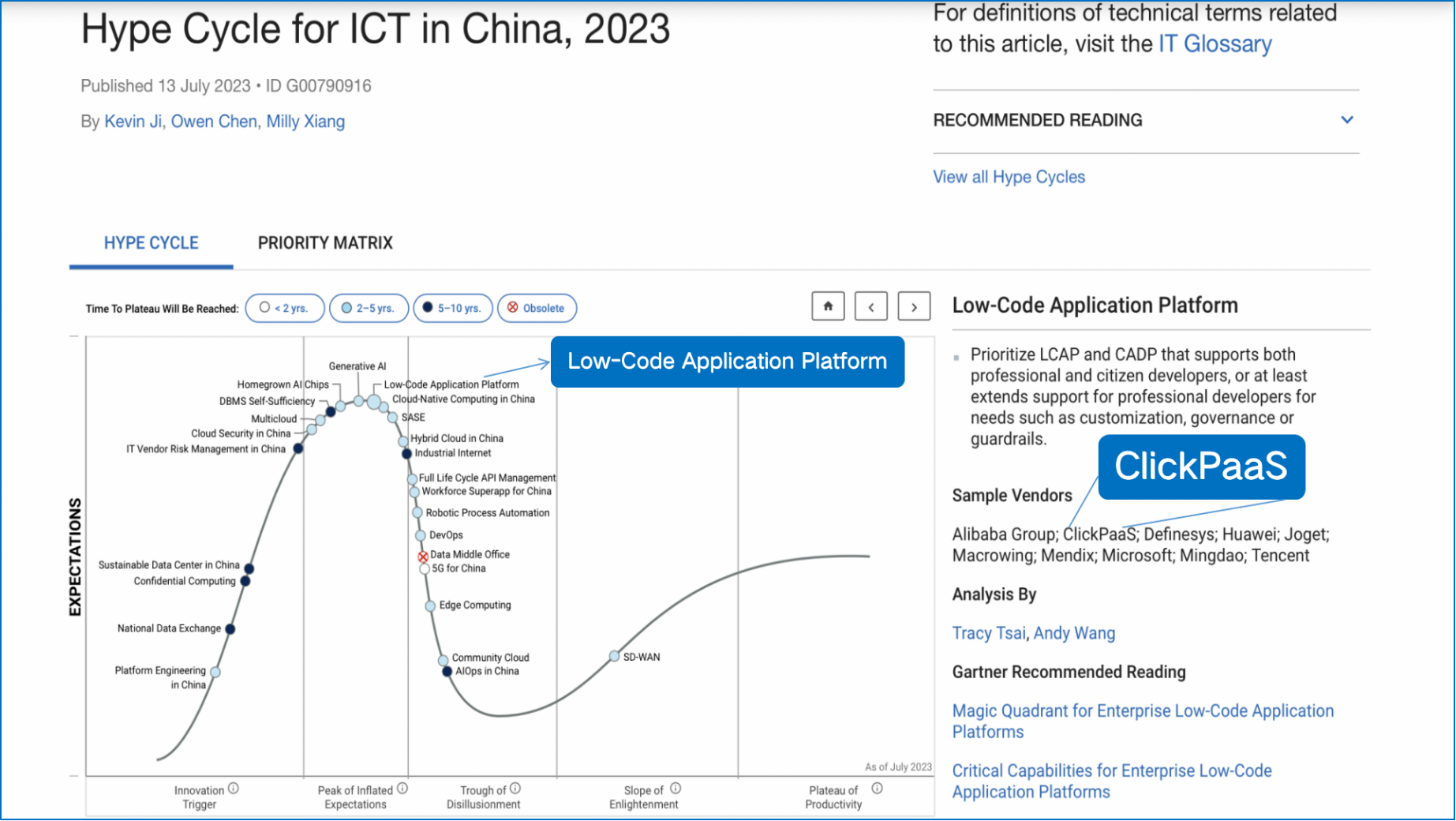 Gartner《2023中国ICT技术成熟度曲线》报告发布,z6尊龙旗舰厅入选低代码平台代表厂商