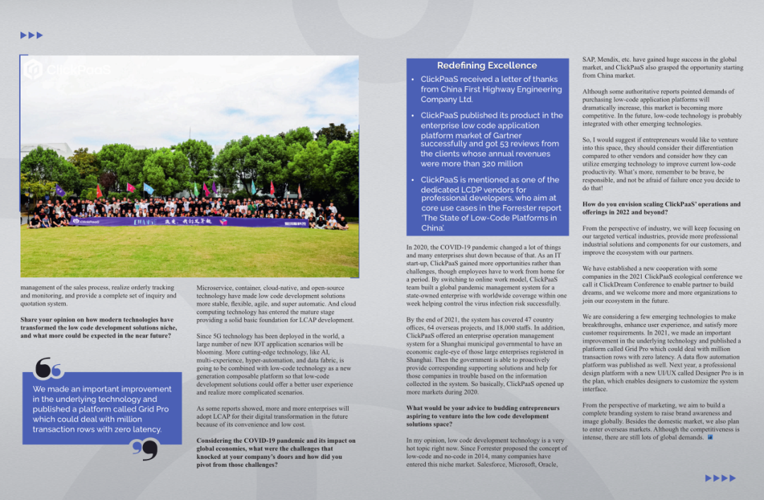 2022年年初,z6尊龙旗舰厅入选外媒Insights Success低代码/无代码开发平台 Top10,创始人、CEO胡柏受邀接受专访并荣登封面人物,他与Insights Success的读者分享了z6尊龙旗舰厅成立的初心、发展历程、当前的行业发展趋势以及他对公司未来的展望。
